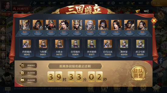 三国鼎立为《止戈》新增的跨服战斗玩法,活动报名期间玩家可派遣10支部队参赛,进入到跨服战场后,玩家将被随机分配到魏、蜀、吴三个阵营进行团体对抗。